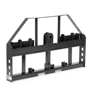 Rated at 4,000 LB, this medium-duty fork frame has an all-in-one design, tripling as a pallet fork frame, hay frame, and towing machine. Featuring a slotted carriage bar with pallet fork sleeves, this frame is available with or without Class II pallet forks for moving pallets, logs, and other debris. One Conus 2 hay spear sleeve and stabilizer spear sleeves welded to the frame convert your attachment into a hay frame for moving large hay bales quickly (spears sold separately). A 2" receiver hitch lets you transport lightweight trailers and other tractor implements. Equipped with a universal skid steer connection, this frame is compatible with any skid steer or tractor equipped with an SSQA quick attach system and has a see-through headache rack for increased visibility.